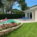 Situada a 2 km de l'Isola dei Delfini, la Villa Ariano Albarella Island invita a los huéspedes a relajarse en una terraza.